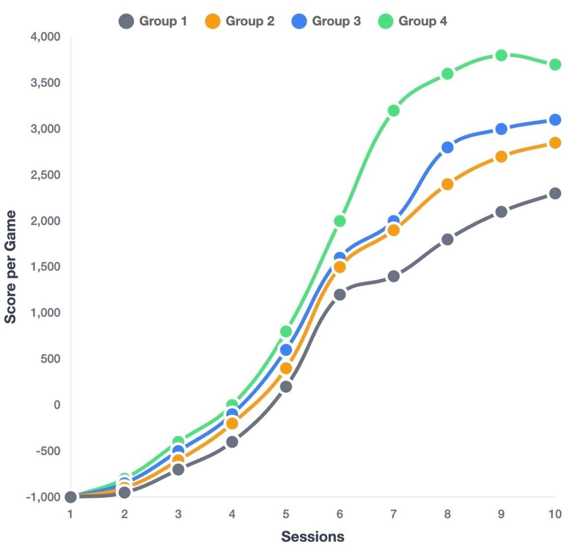In the beginning, all groups were similar. But after six sessions, differences emerged.