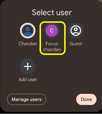 I’m an android phone user & I have a Macbook air. In my phone, I’ve set up a different user - Focus Chandan 🙂 . Switching to this user is super - easy: