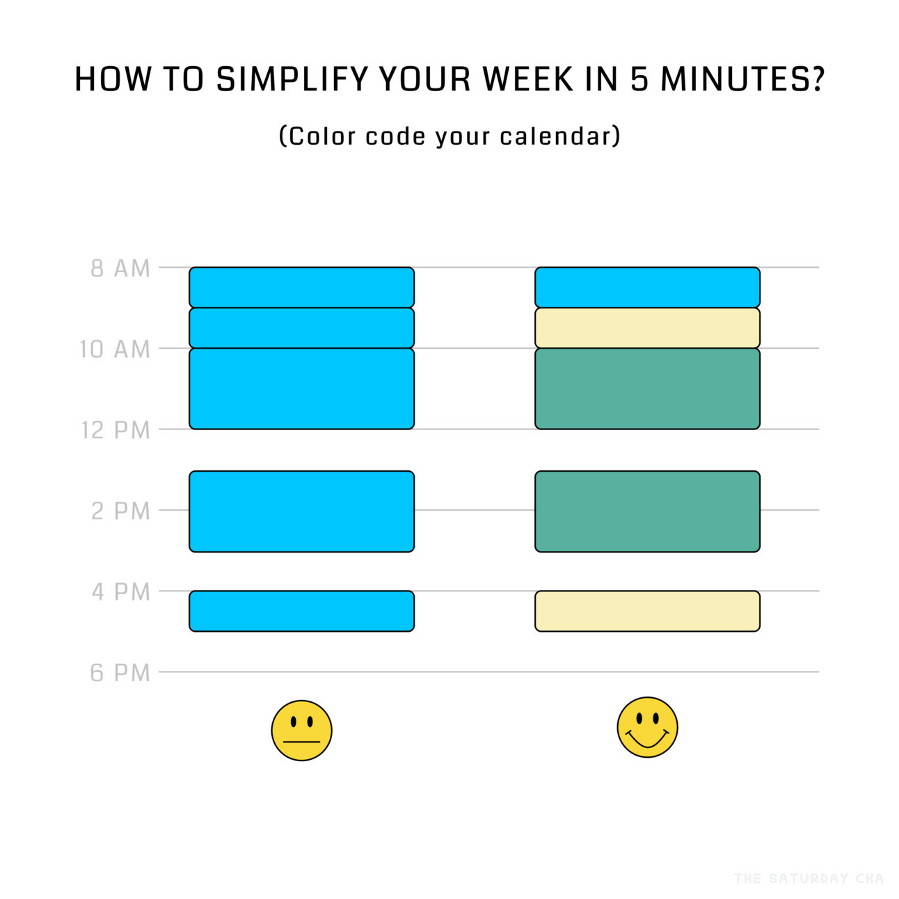 However, in a few steps, you can simplify your week. By color - coding your calendar. e.g.